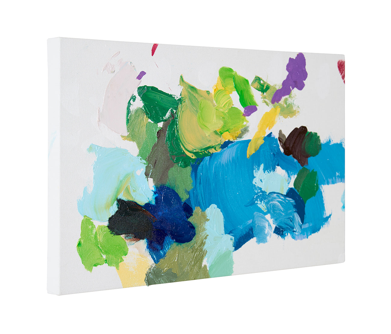 Kunstneren vælger et lærred, der er lagt på arbejdsbænken, som modtager af hendes kreative eksperiment.