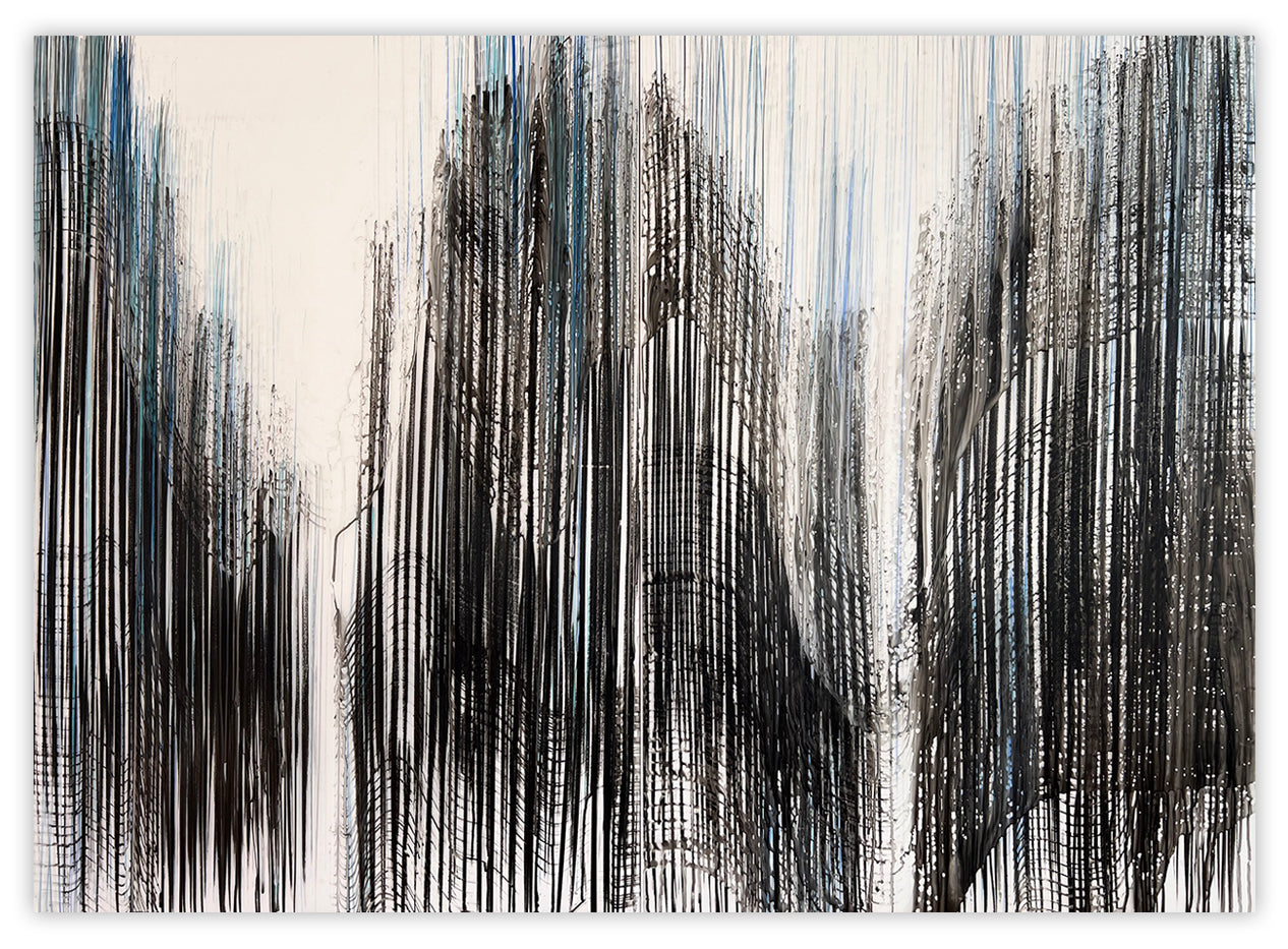 All artworks on IdeelArt are original, signed, delivered directly from the artist's studio, and come with a certificate of authenticity.Las obras de Big Blue Melt han sido creadas con lápices de pigmento y hielo. Peerna comienza los dibujos marcando primero líneas verticales de pigmento sobre papel plástico. Luego aplica metódicamente agua o hielo, haciendo que las líneas en la superficie se derritan y goteen. El dibujo solo deja de hacerse cuando el agua se ha secado. Las marcas de goteo resultantes en las obras capturan el momento en que lo sólido se convierte en líquido, trazando un paralelo visual con el momento en que el hielo se derrite en agua. Esta serie se convierte en una respuesta visual al rápido derretimiento de los glaciares alrededor de la tierra debido al calentamiento del clima.