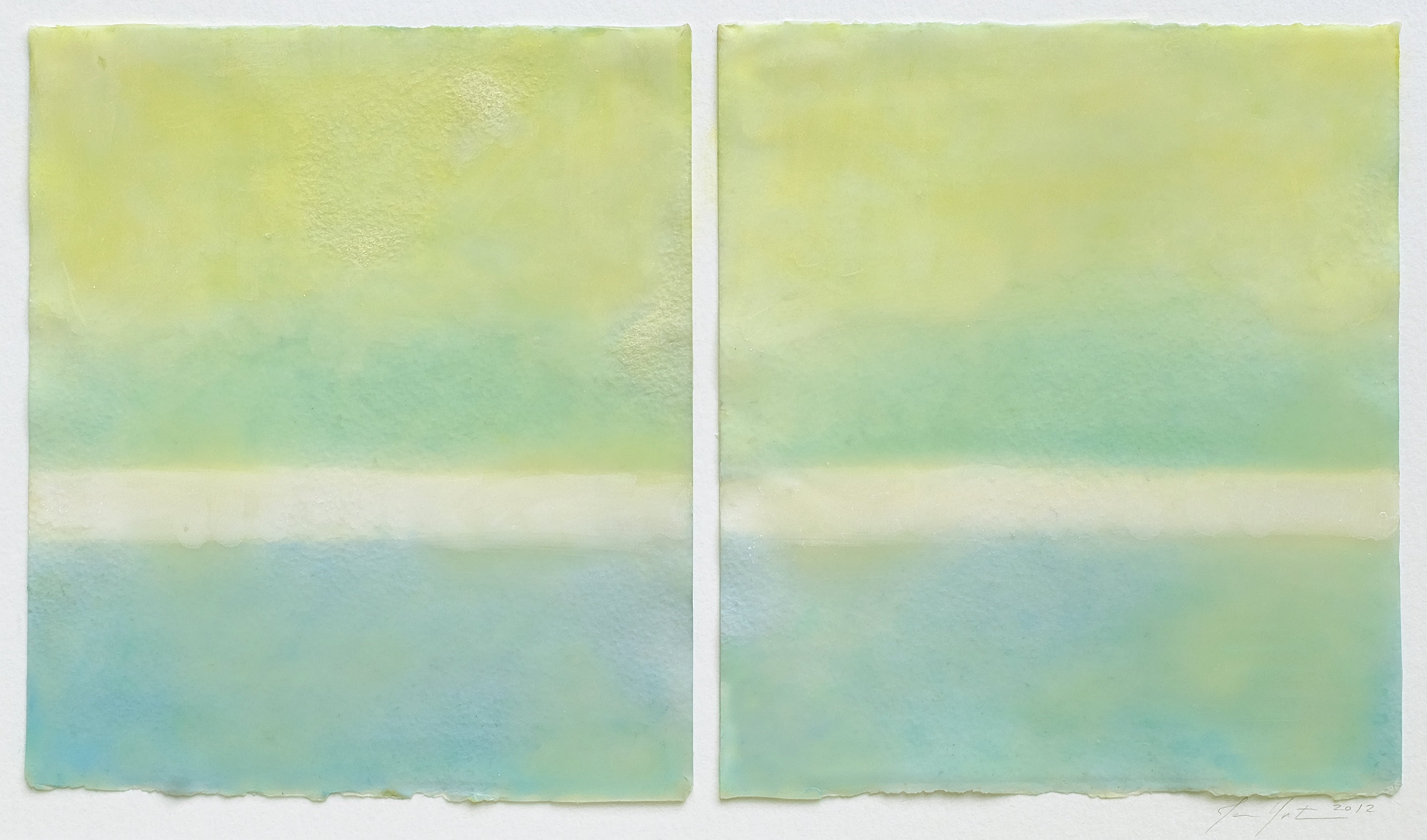 Technique: Beeswax, resin and pigment on archival paper mounted on archival board matted.
