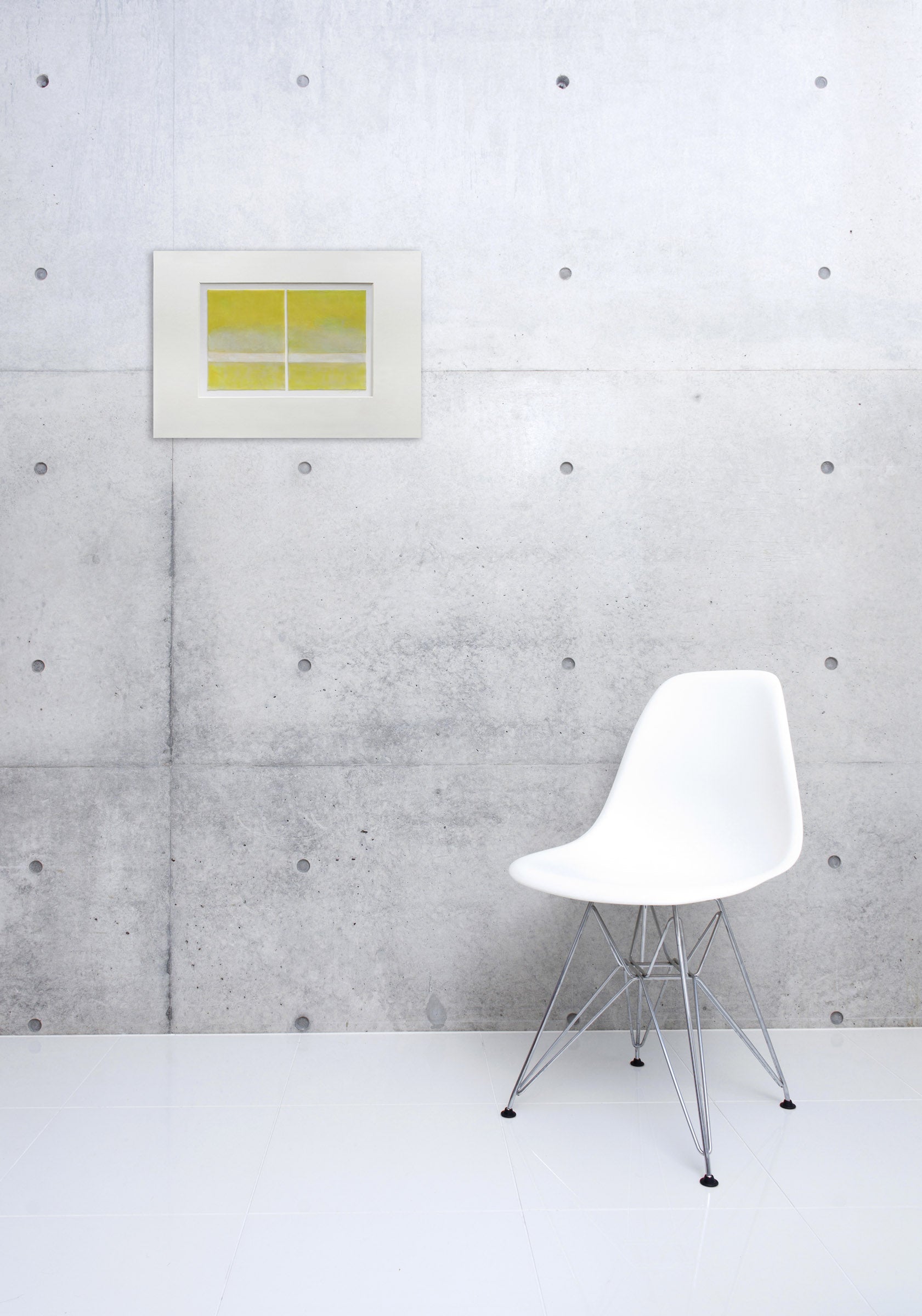 Yntema applique de la cire d'abeille naturelle et de la résine sur des panneaux en bois, utilisant un chalumeau pour mélanger harmonieusement ses coups de pinceau. Avec une attention particulière au processus, elle crée des images à travers des accumulations lentes et délibérées de couches de couleur semi-transparentes. La lumière pénètre ces couches et devient présente sur le plan compositionnel. La chaleur dilue, mélange et lie invisiblement chaque couche en une tonalité lumineuse translucide. L'application et le retrait de matériel, dans un processus additif/réducteur, permettent à des moments inattendus d'émerger dans une danse alchimique entre le dirigé et l'incontrôlé. Il y a une qualité sublime dans son travail alors qu'elle crée un environnement de lumière diffuse qui reste minimal et abstrait.