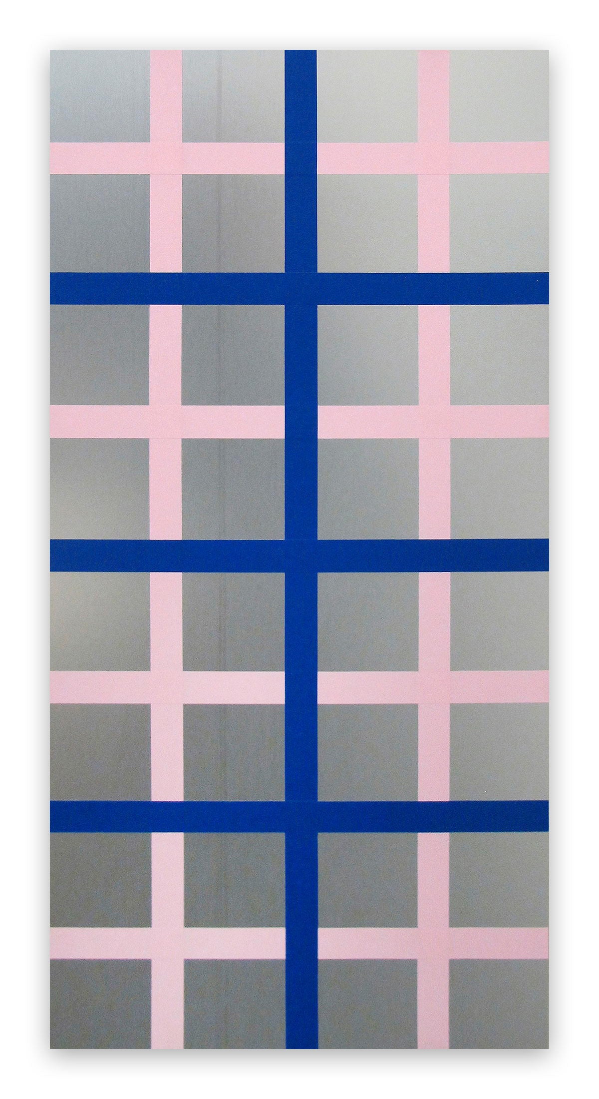 यह दो चिपकने वाले रंगीन टेपों से बना है जो एनोडाइज्ड एल्युमिनियम पैनल पर एक नियमित ग्रिड पैटर्न बनाते हैं।