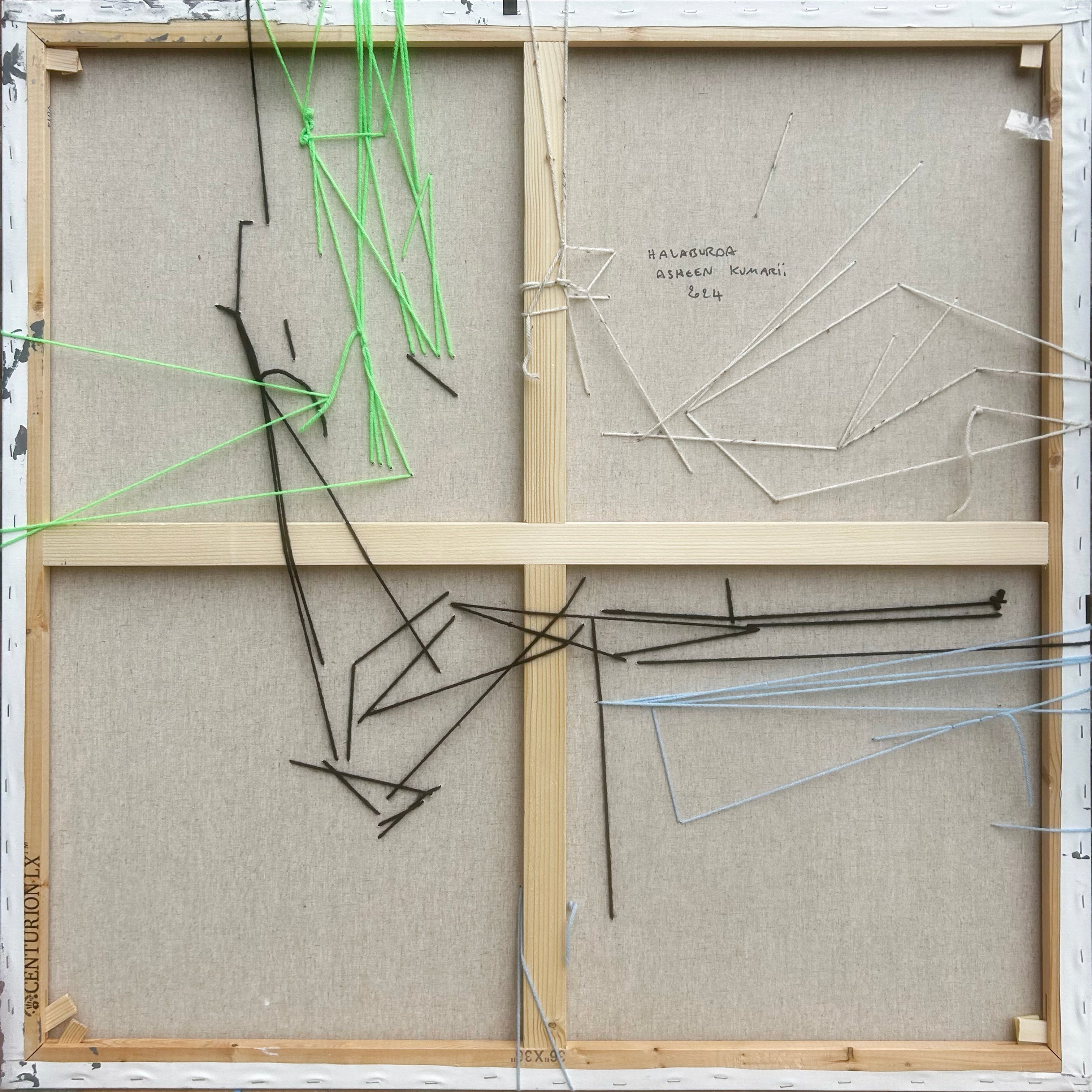 Technique: Acrylic, color tape, yarn and LEGO brick on canvas