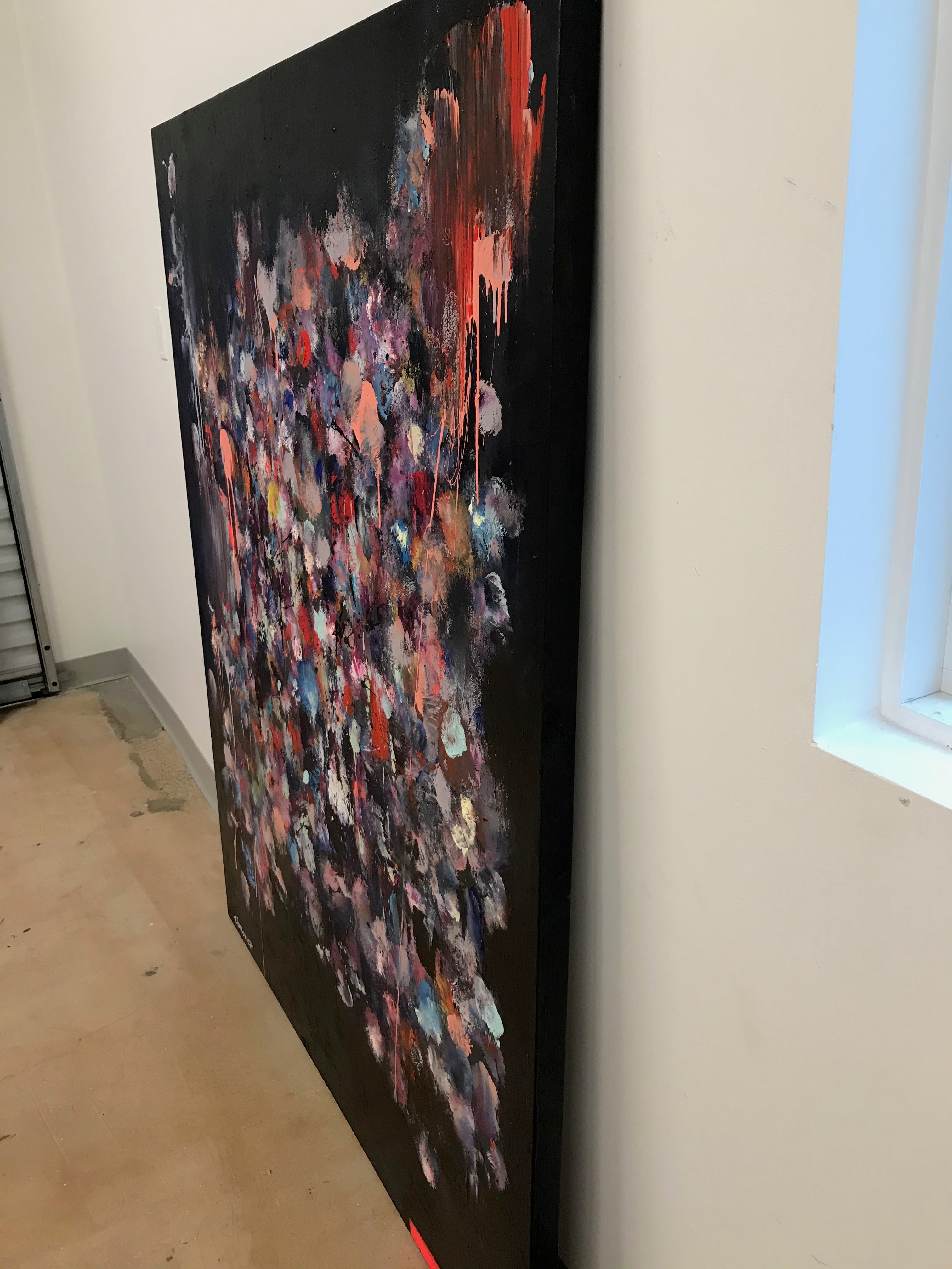 Le sue composizioni si evolvono secondo un processo subliminale in cui risponde visceralmente ai colori, agli strati, alle linee e alle forme, guidando ogni composizione fino a quando non si rivela a lui come completata.
