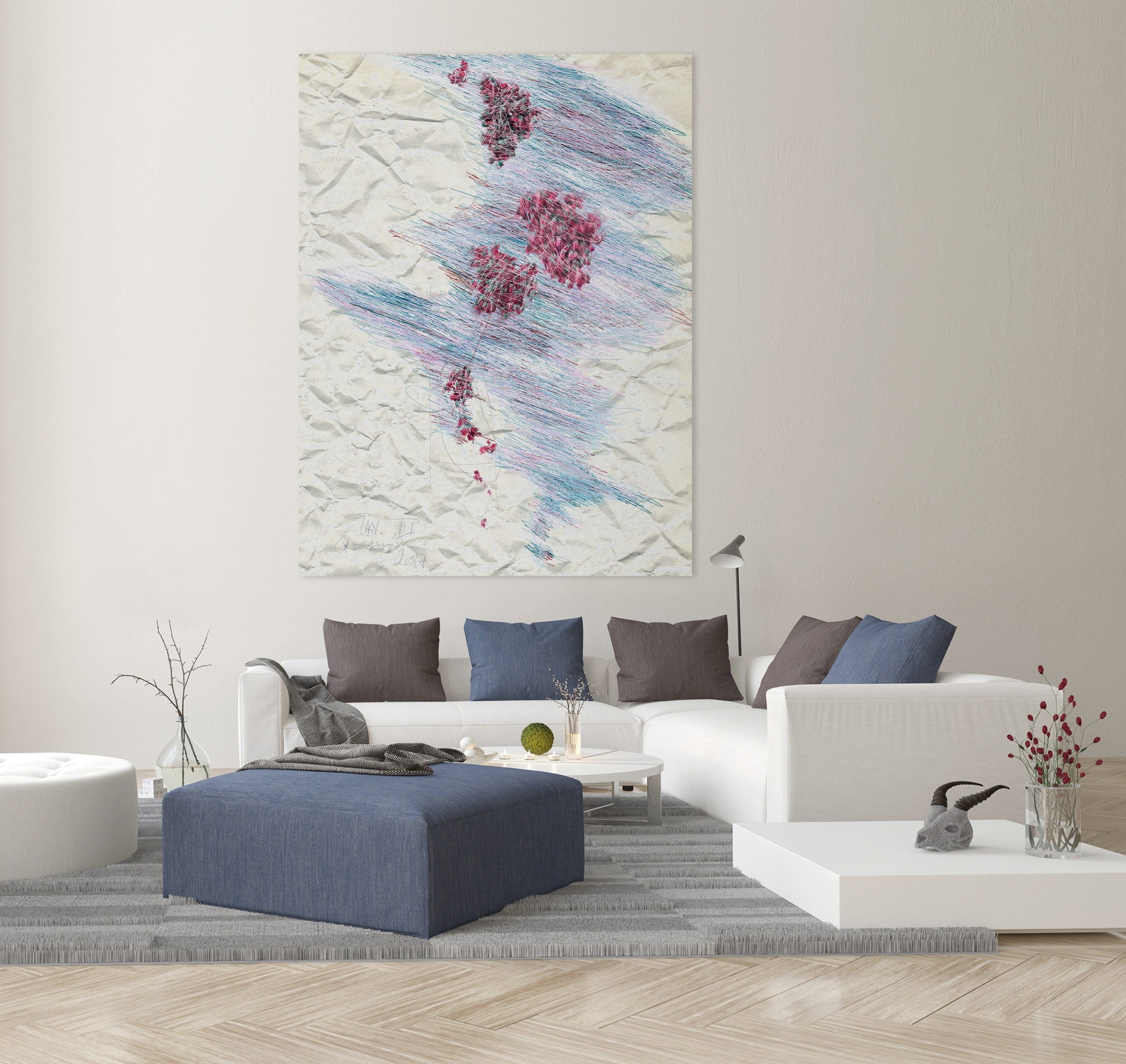 彼の抽象シリーズ「人間の脳の二分法」は、このアプローチを象徴しています。これは、花の写真、ビーチの風景、そしてしわくちゃの紙の断片を組み合わせて作成され、そのアセンブラージュを追加の芸術的介入、例えば描かれた線や落書きされたテキストのための基盤として使用しました。さまざまな画像とメディアが組み合わさって、複雑で層状の画像を作り出し、最終的な形としてデジタルCプリントとして提示されます。