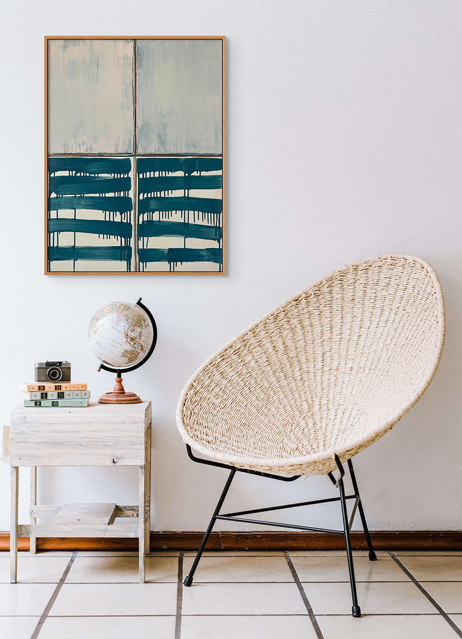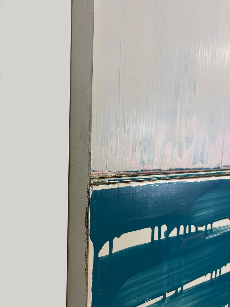 All artworks on IdeelArt are original, signed, delivered directly from the artist's studio, and come with a certificate of authenticity.Boecker begynner hvert nytt verk med å skissere inn komposisjonen sin. Men verket handler til syvende og sist om fargene og lagene som vil utvikle seg på overflaten over tid. Han bygger opp malingen sin i en langsom prosess, legger til lag med farge og fjerner dem delvis, noe som lar ekkoene av erosjon forbli synlige i det endelige verket. Den gradvise opphopningen av pigment formidler en visuell følelse av dybde, samtidig som den kommuniserer en bittersøt følelsesmessig opplevelse av at tiden går.
