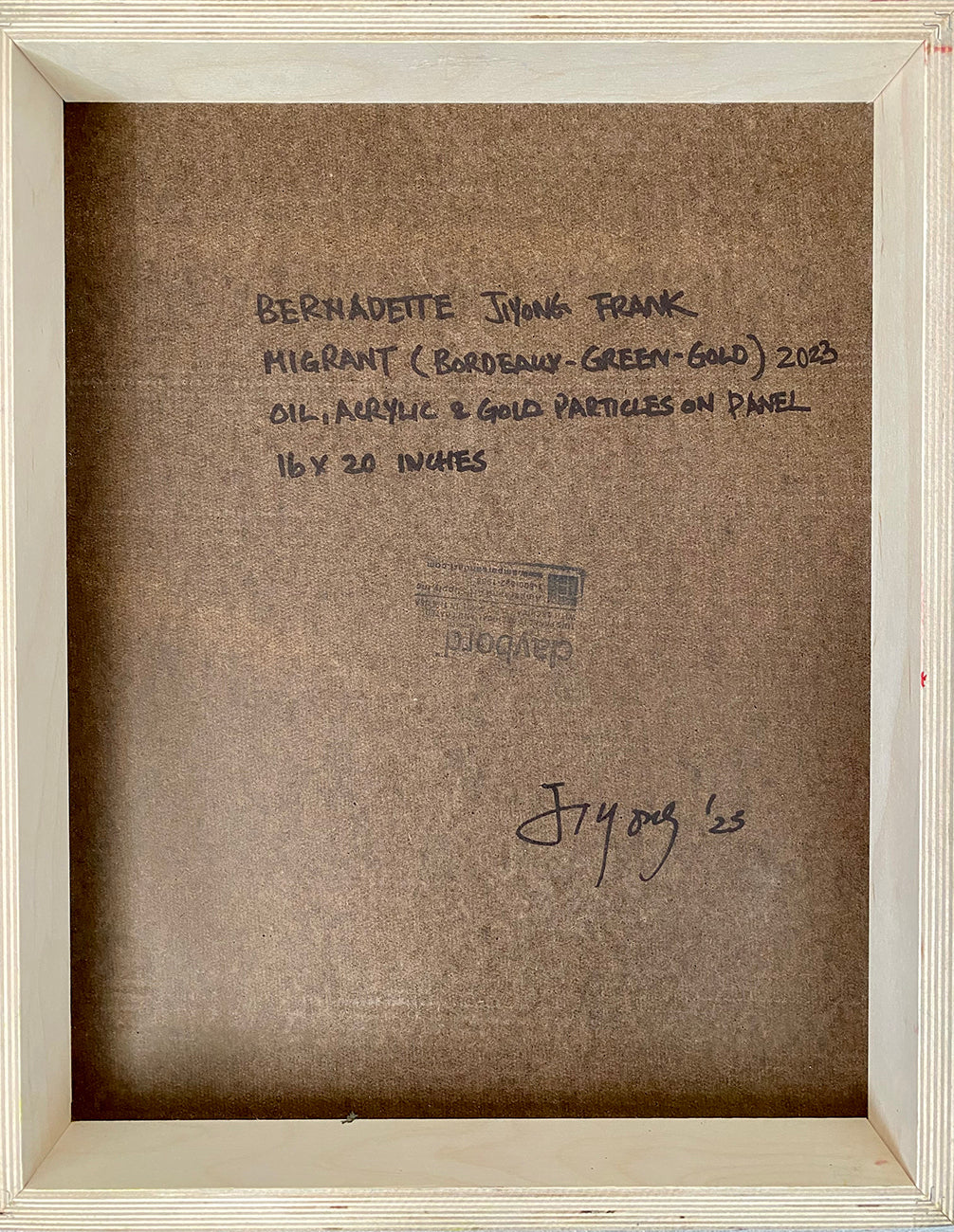 Bernadette Jiyong Frank er en koreanskfødt, California-basert abstrakt kunstner hvis kunstneriske praksis integrerer konseptet "Ma" og inviterer seerne til å dykke inn i de subtile mellomrommene i endeløse rom av forskjellige betydninger.