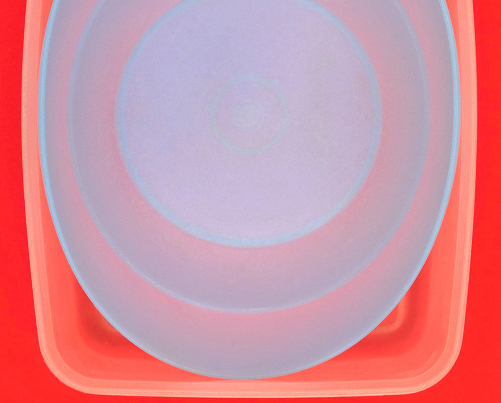 Jak opisuje: "Tupperware używał dwóch kolorowych przezroczystości (nakładających się kolorów), prosta sytuacja martwej natury, ale zdjęta dwukrotnie, a następnie obraz byłby odwrócony, czasami otrzymywałeś podwójną intensywność koloru"
