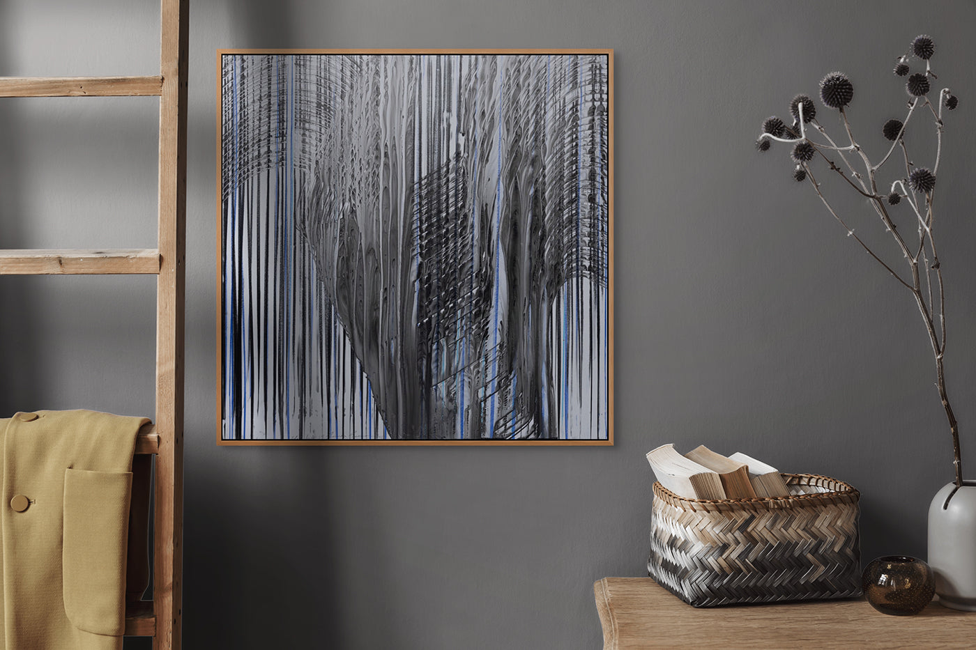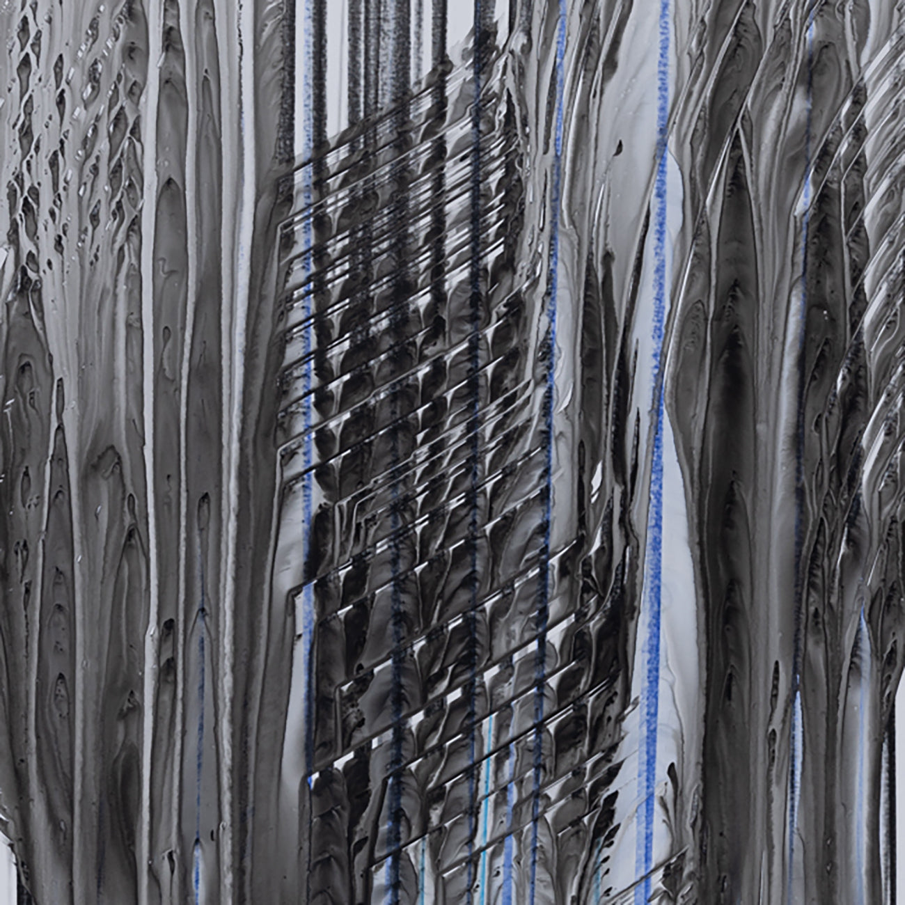 All artworks on IdeelArt are original, signed, delivered directly from the artist's studio, and come with a certificate of authenticity.Blue Melt are works that have been created with pigment pencils and ice. Peerna starts the drawings by first marking vertical pigment lines onto plastic paper. She then methodically applies water or ice, causing the lines on the surface to melt and drip. The drawing only stops making itself when the water has dried. The resulting drip marks on the works capture the moment when solid turns into liquid, drawing a visual parallel to the moment when ice melts into water. This series becomes a visual response to the rapid glacier melt around the earth due to the warming climate.