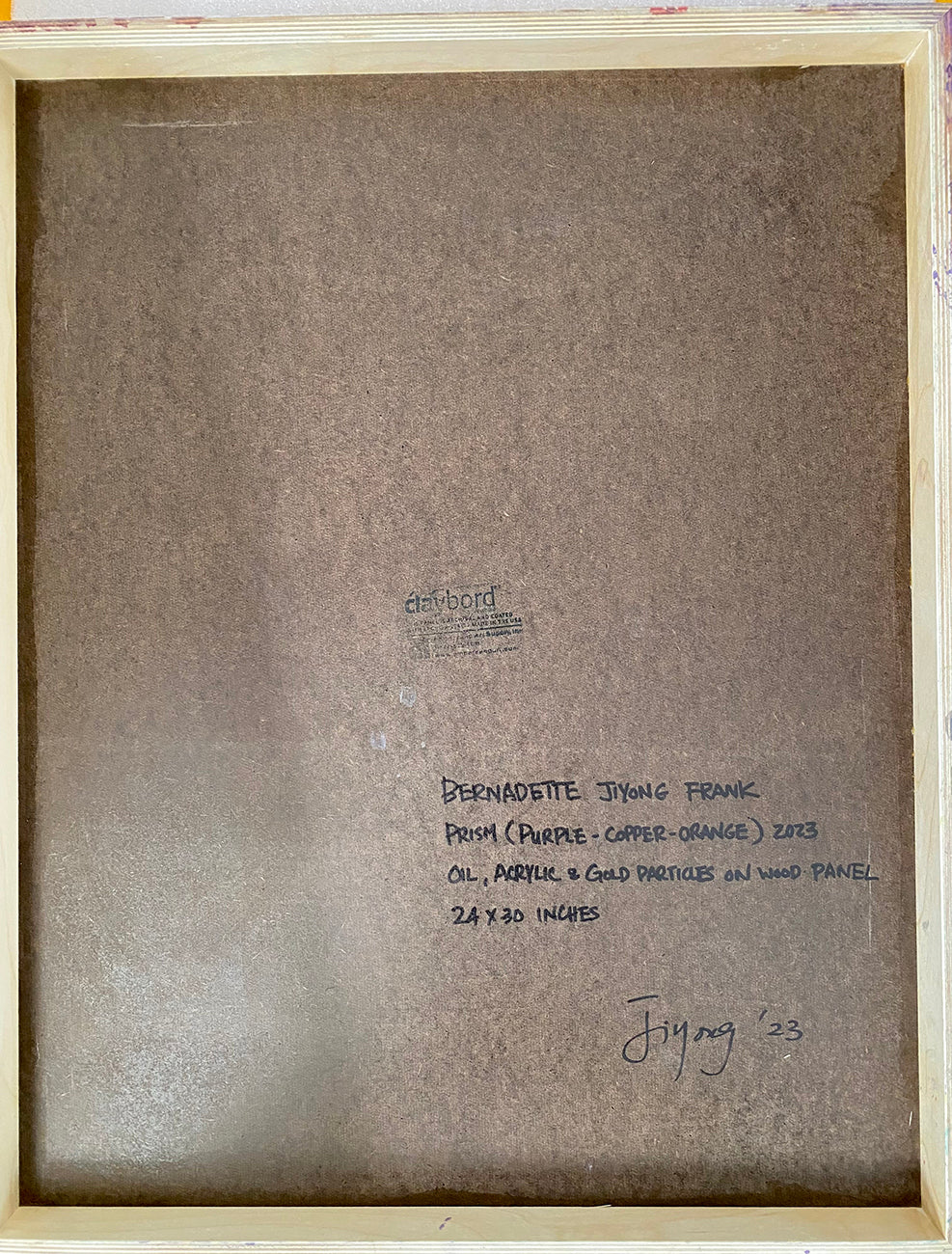 Bernadette Jiyong Frank employs multiple layers of translucent paint in her artwork. Each layer is applied slowly and deliberately, allowing time for the paint to dry before applying the next layer. This process creates depth and richness in the final piece. Time plays a significant role in Jiyong Frank's artistic process. By adhering to the practice of applying only one layer per day, she emphasizes the importance of patience and reflection. This approach acknowledges the passage of time as an integral part of the creative journey. The act of applying each layer of paint is considered a meditative process for Jiyong Frank. This suggests that she approaches her work with a sense of mindfulness and introspection, channeling her focus into each brushstroke. The meditative quality of her application technique likely contributes to the contemplative nature of her artworks. Jiyong Frank views the application of each layer as an act of creating space within the artwork. As the layers accumulate over time, they contribute to the overall dimensionality of the piece. This technique allows the viewer to engage with the artwork on multiple levels, both visually and conceptually.
