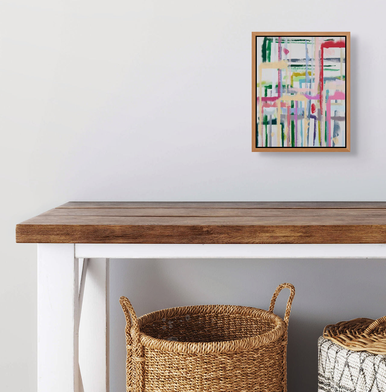 Nesta série, as composições ganham vida através de uma dança não planejada de cores. Cada peça registra um incidente único, uma interação imprevisível dos movimentos intuitivos da artista, o espectro vibrante de sua paleta e o elemento de acaso sempre presente. É nesses momentos, em meio às gotejadas e respingos acidentais, que a artista encontra uma coincidência perfeita, onde sensação, matiz e acaso estão intrinsecamente entrelaçados.