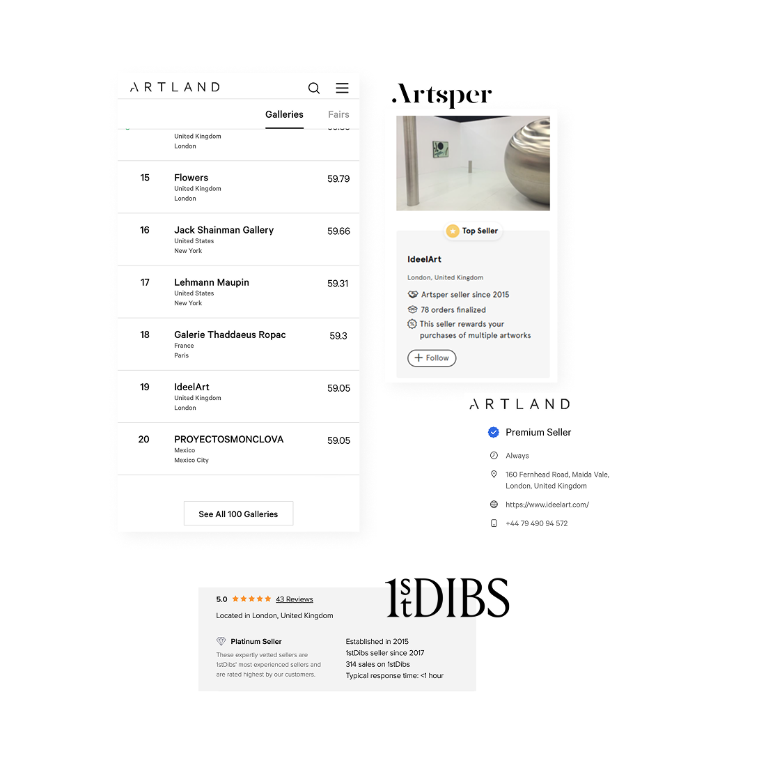 Ideelart's online-first strategy is second to none. We are the only art gallery with such a wide online distribution network, and have been ranked 19th worldwide by Artland for our online visibility.