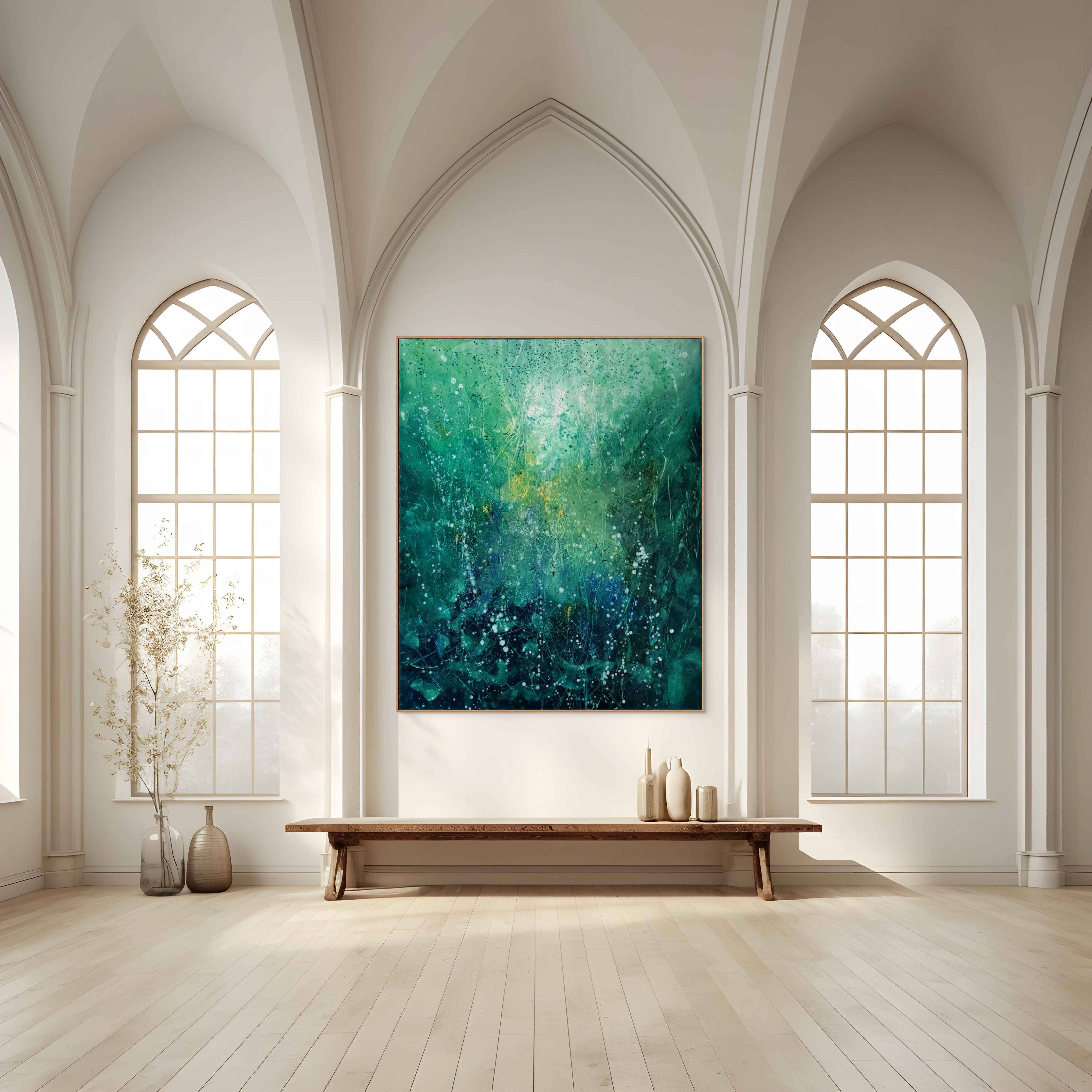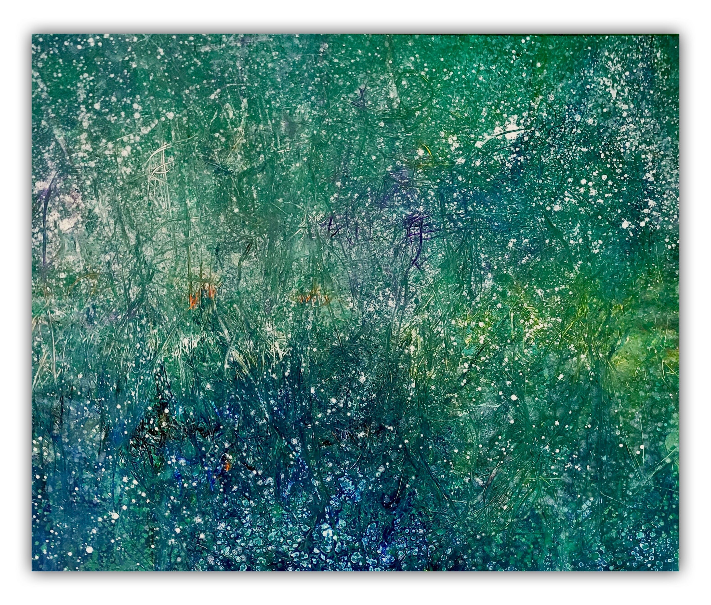 All artworks on IdeelArt are original, signed, delivered directly from the artist's studio, and come with a certificate of authenticity.Skapad med tekniken "Dissolutio"—vilket betyder "försvinnande"—löser detta verk upp gränserna mellan mänsklighet och natur. Tusentals små målade prickar förvandlar mikroskopiska cellulära strukturer och ekosystem till omslutande färgfält. Verket tar upp klimatförändringar och människans alienation från naturen samtidigt som det erbjuder betraktare stunder av psykologisk återhämtning och djup lugn.