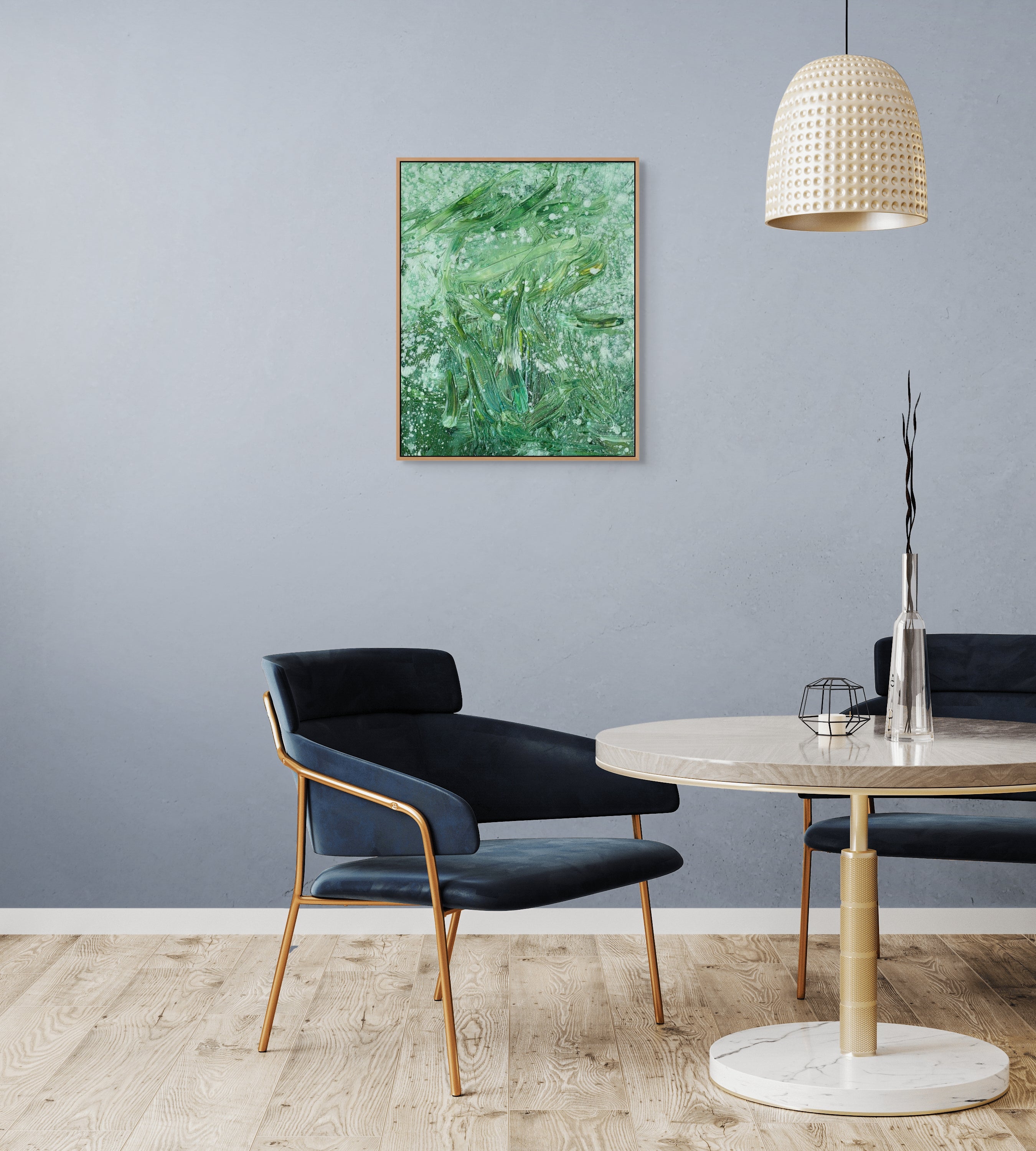 All artworks on IdeelArt are original, signed, delivered directly from the artist's studio, and come with a certificate of authenticity.Skapad med tekniken "Dissolutio"—vilket betyder "försvinnande"—löser detta verk upp gränserna mellan mänsklighet och natur. Tusentals små målade prickar förvandlar mikroskopiska cellulära strukturer och ekosystem till omslutande färgfält. Verket tar upp klimatförändringar och människans alienation från naturen samtidigt som det erbjuder betraktare stunder av psykologisk återhämtning och djup lugn.