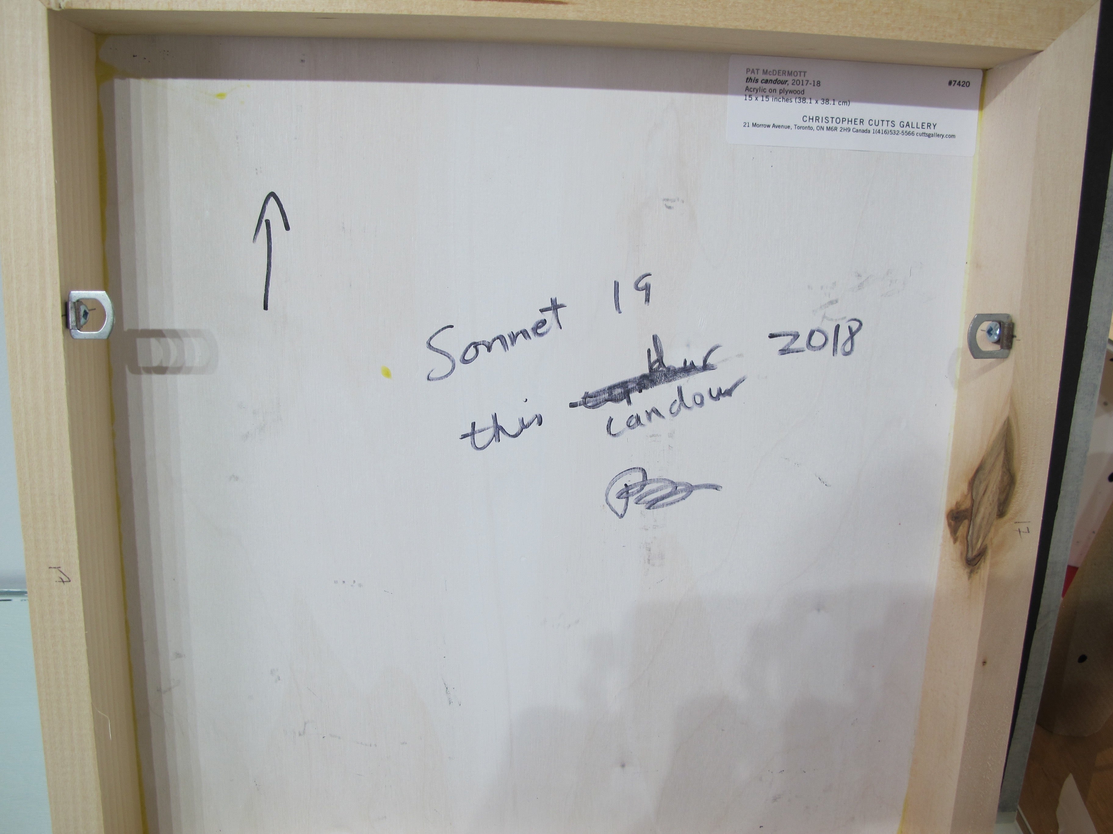 Pat McDermott är en kanadensisk konstnär vars verk befinner sig i ett gränsland av visuellt utrymme mellan koncept som abstraktion och figurativitet. I sin Sonettserie anspelar oigenkännliga former, figurer och texturer spöklikt på naturens värld och igenkännbara saker.