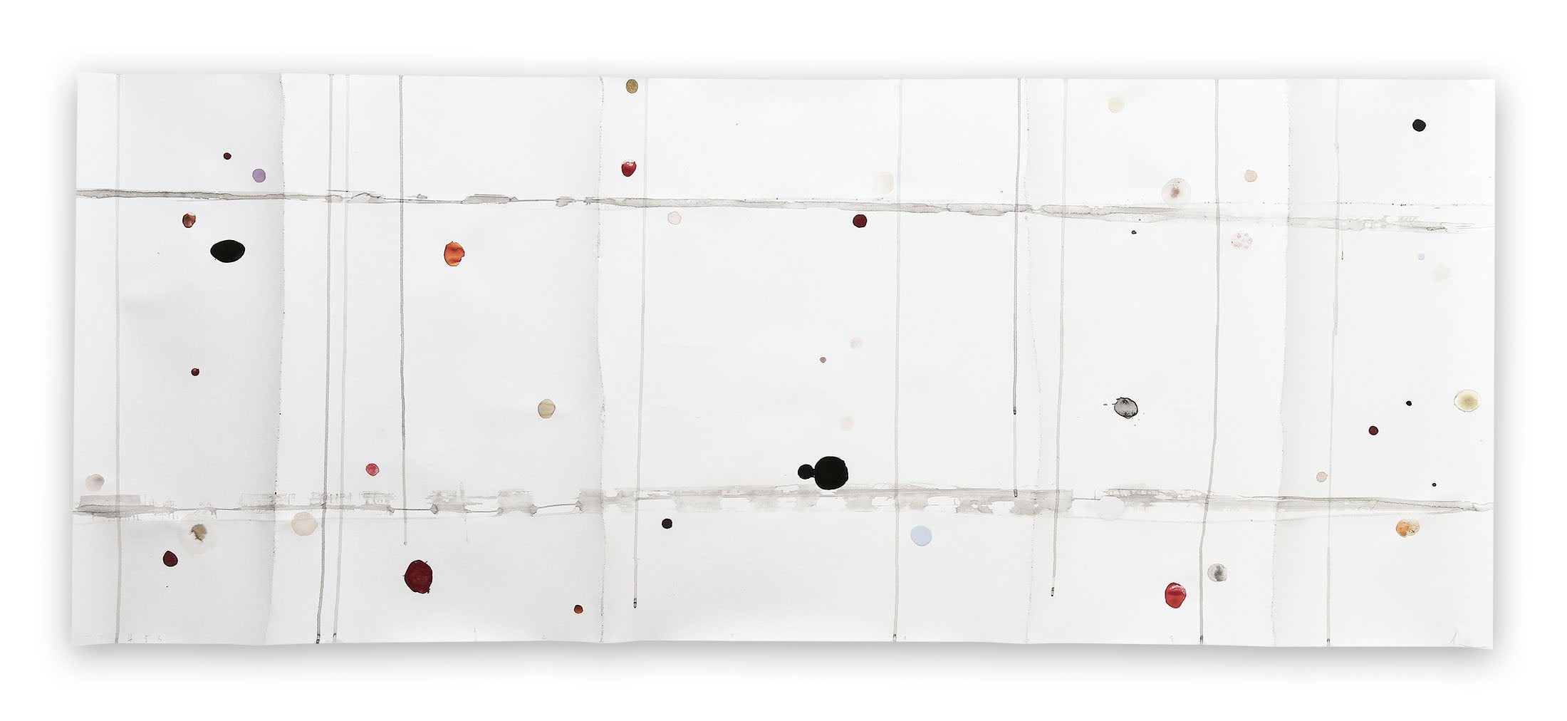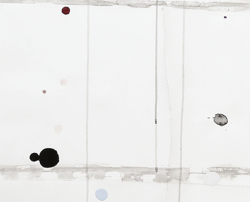 เส้นแนวนอนและแนวตั้งในเฉดสีดำและเทา ได้สร้างจังหวะให้กับงานนี้อย่างตั้งใจ และเพิ่มความเป็นดนตรีให้กับมัน ในขณะที่รอยย่นของกระดาษทำให้มันกลายเป็นวัตถุ 3 มิติ