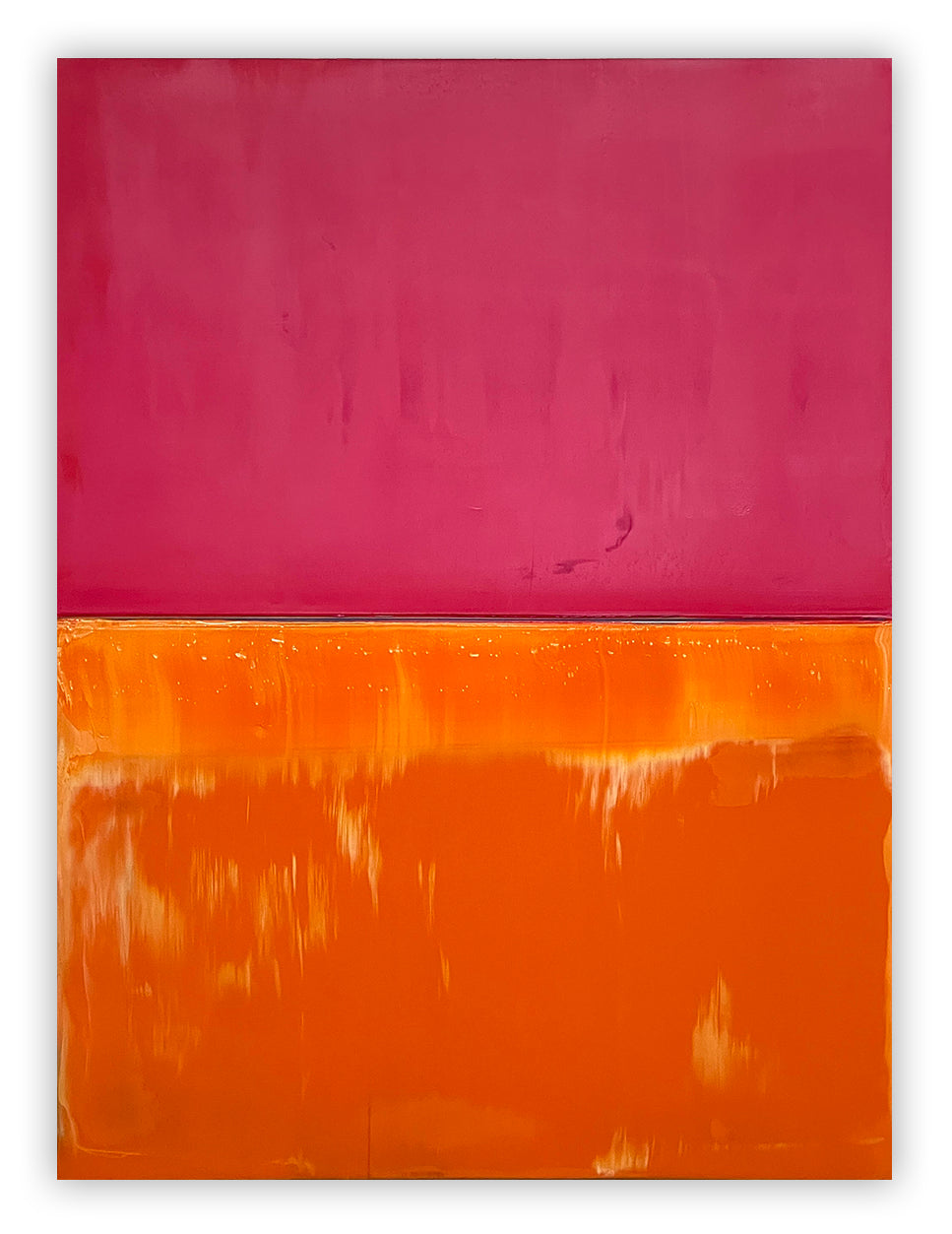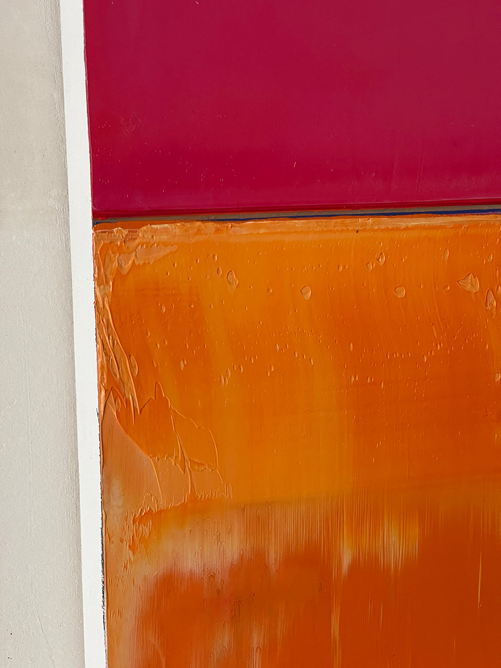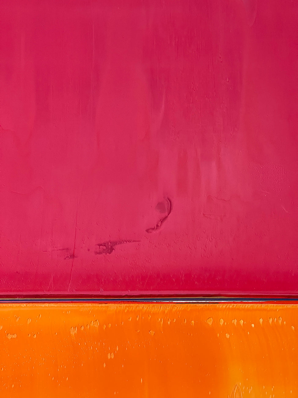 Boecker 每次新作开始时都会用铅笔勾勒出他的构图。但这件作品最终是关于随着时间推移在表面上演变的颜色和层次。他以缓慢的过程逐层叠加颜料,添加颜色后再部分去除,让侵蚀的回声在最终作品中保持可见。他使用的丝网印刷刮刀为表面增添了独特的印记,将绘画的视觉语言与印刷的视觉语言混合在一起。颜料的逐渐积累传达了一种视觉深度感,同时也传达了一种时间流逝的苦乐参半的情感。凝视表面越久,思绪可能越深入地游走于颜色和光的潜在景观之中。