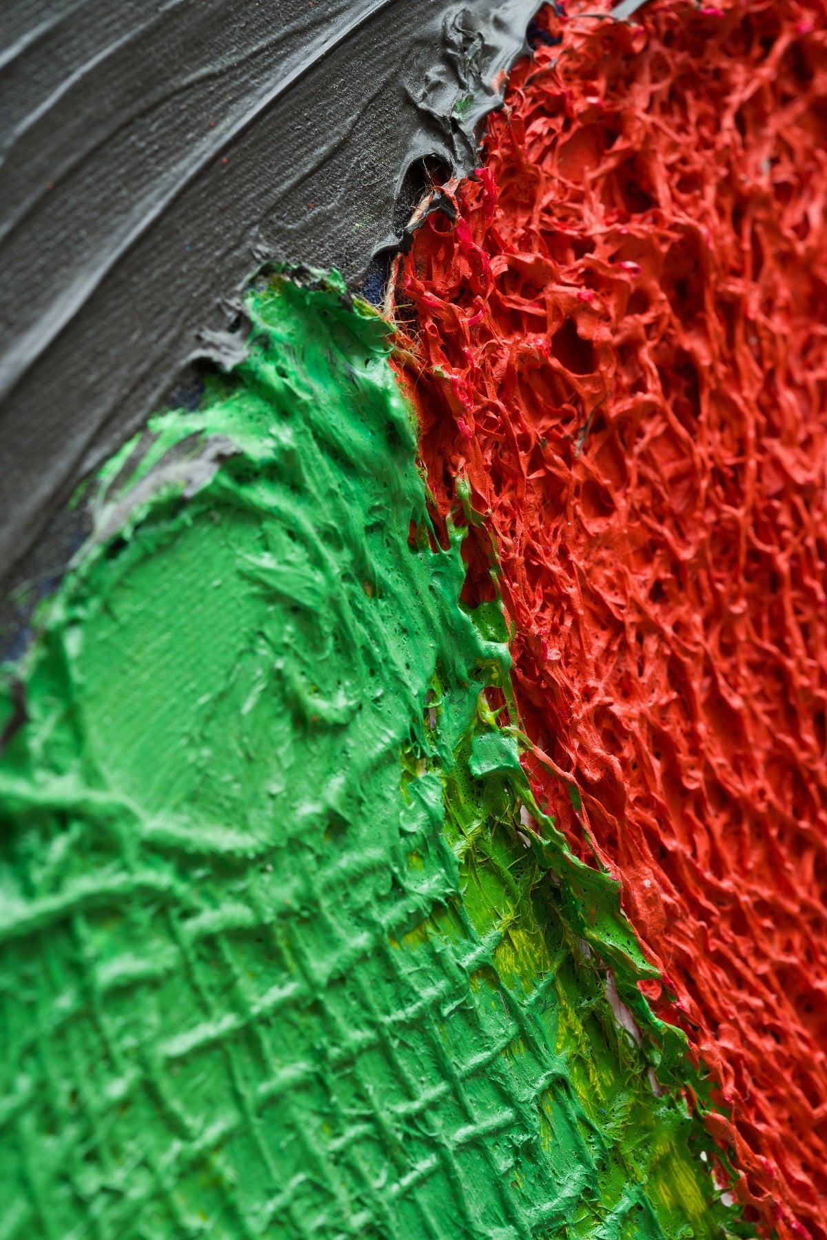All artworks on IdeelArt are original, signed, delivered directly from the artist's studio, and come with a certificate of authenticity.丙烯、麻布網、園藝網、沙發布、帆布和洋蔥袋在畫布上。