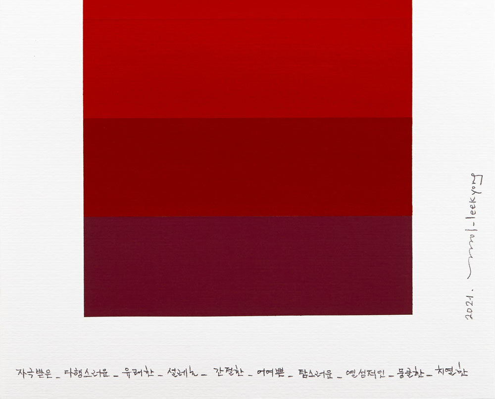 在她的作品中,李正在回應她在物理環境中的情感經歷。顏色是她主要的視覺語言。